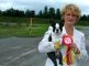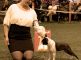 Rosa liker å gå på utstilling. Et par dager før tror jeg hun skjønner hva som skjer... da klippes halsring og barter... kjøttboller lages og spenningen stiger. Da er hun ellevill.
